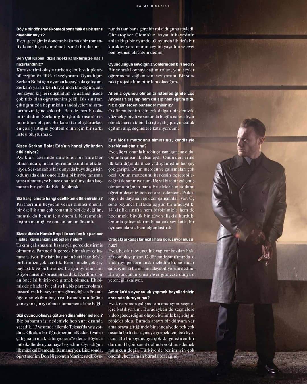 К: Бях решил да работя по това да мога да покажа повече от себе си пред хората.Исках да избирам внимателно нещата, с които се занимавам, така че всеки един проект да показва част от мен. ВЯрвам че само така ще бъда щастлив. Исках да пробвам в романтична комедия, така че се зарадвах като дойде предложението за "Почукай на вратата ми".Исках да съм в подкрепа на независимото кино, на окето много държа, направих го.Включих се в проекта "Aynen aynen"Снимах в реклама ,но държах марката чието лице ще стана да има ценности като моите.Вече не исках да работя в проект който не чувствам че ми пасва.Защото вярвам че за човек много говори не това на което казва "да", а това на което казва"не"..Преди много се самообвинявах и се тормозих като нещо не се получава, сега се научавам да си казвам че така е трябвало.
