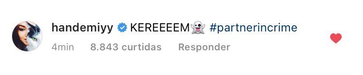 Да виждате някъде тагната Ханде? Затова тя му отговаря без да лайква като крещи с главни букви името му, а след това добавя хаштага KEREEEEM👻 #partnerincrime. Партньорите не трябва да се забравят!