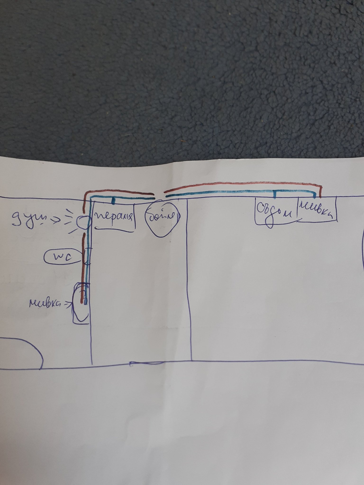 Моля за съвет, да послушаме него или да си настоявам за моята схема как си го представям- идва чиста вода при бойлера и от там върви по стената.