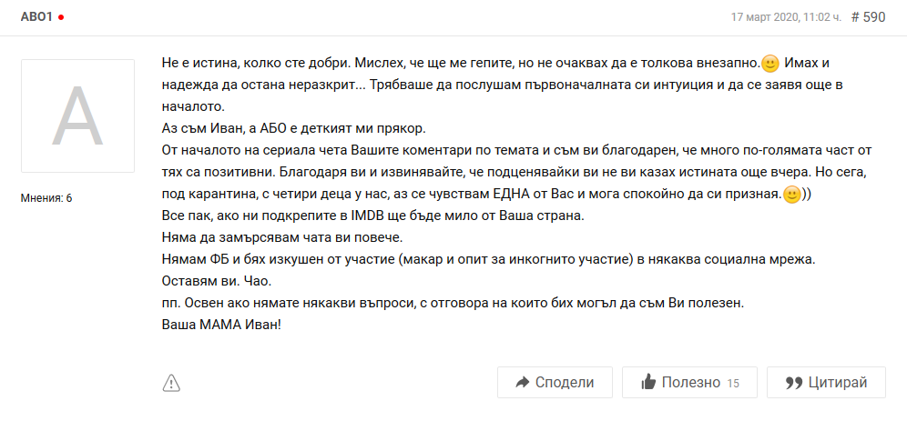 Благодаря на съфорумката, която ми прати на лично профилът на Иван.