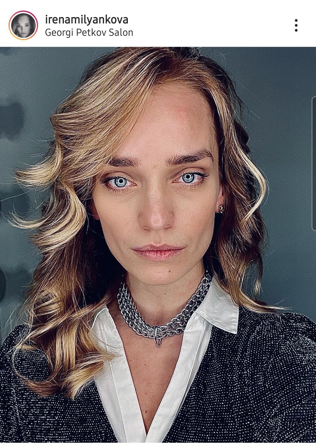Милянкова изглежда тъжна и с помръкнал поглед на тази снимка. Иначе ми е много симпатична. И прическата е лелинска – не, макар цветовете да са много хубави и добре съчетани.