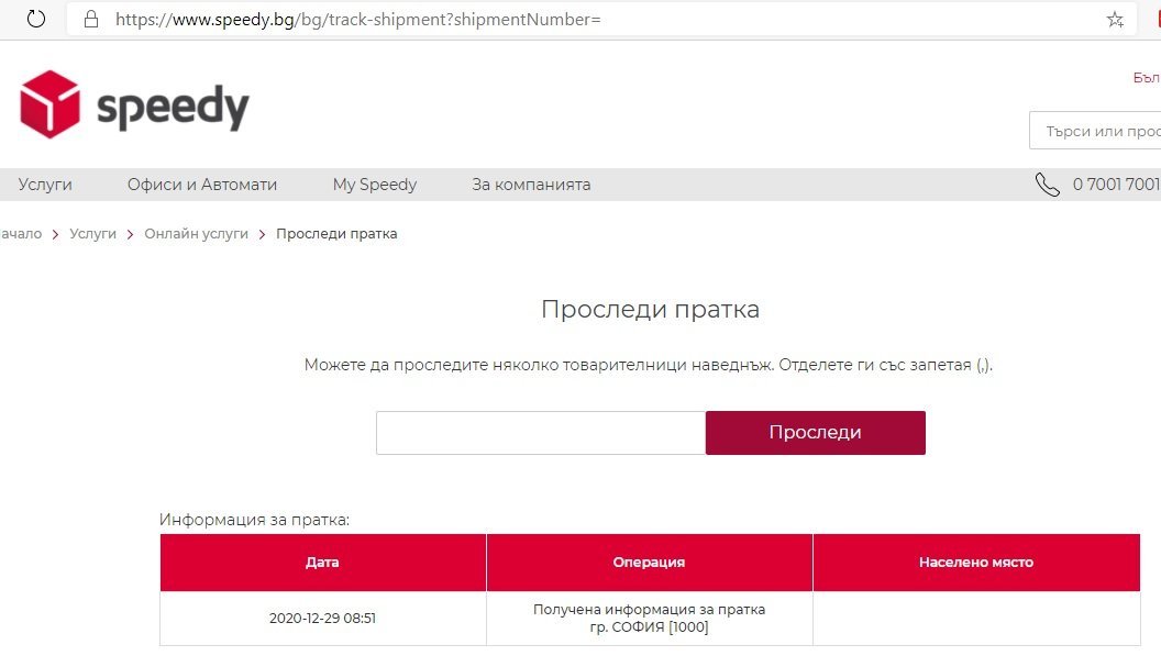 В Спиди ще се появи статус, чак когато пратката вече е в БГ.