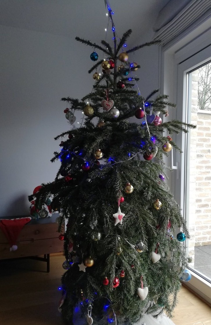 Елхата я купихме още преди Никулден,вече не мога да я гледам,защото е изсъхнала и клюмнала от всякъде,навсякъде иглички,падат играчките на пода,защото клоните и вече са  до земята..ама на 10.01. ще ги събират чак. Това означава ,че по-рано от 9 не мога да я изкарам..