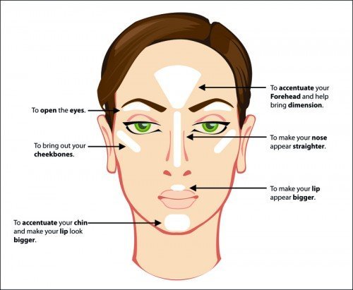 На скулите се слага и понякога на костта на веждите. Другото са влогърски измислици.