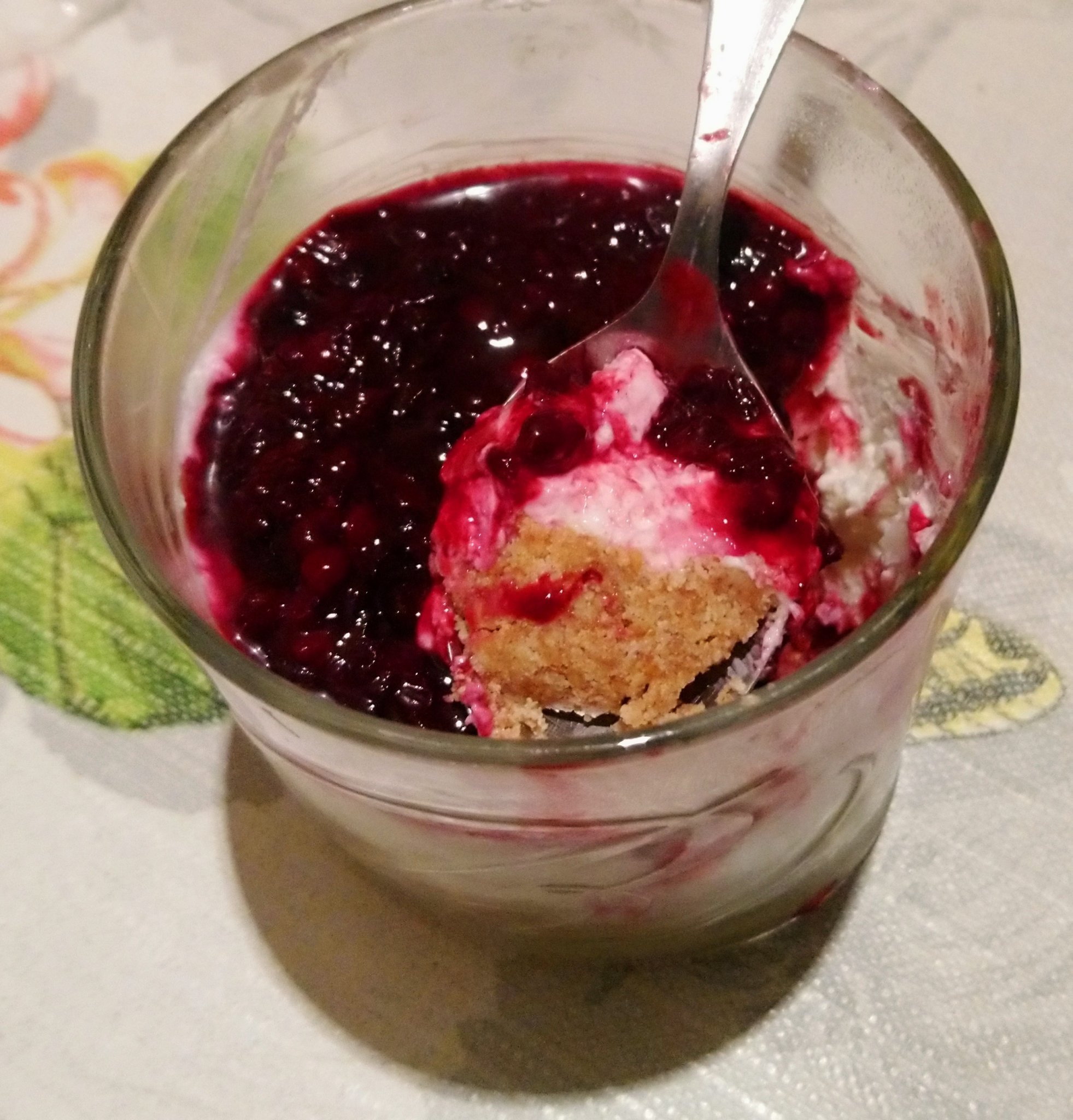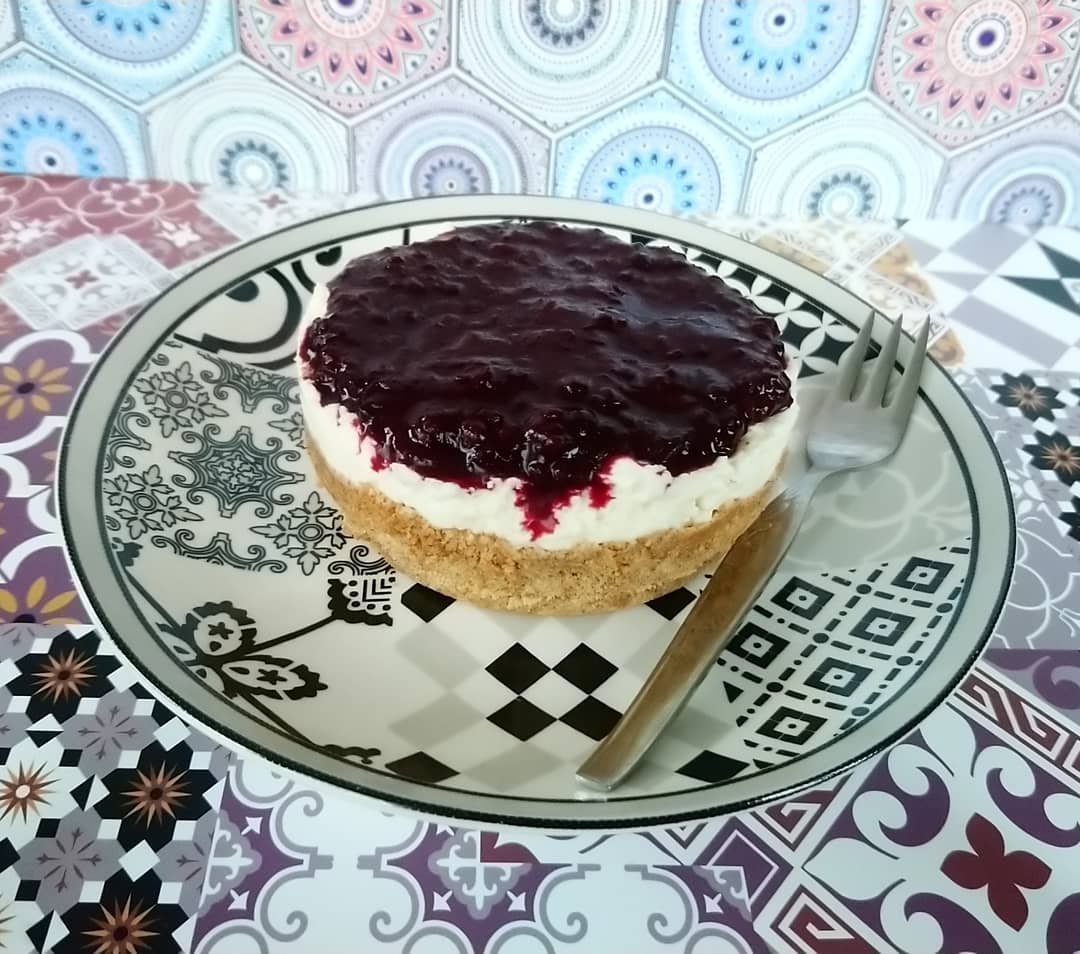 Чийзкейк с домашни пълнозърнести бисквитки, крема сирене, йогурт, мед и къпини