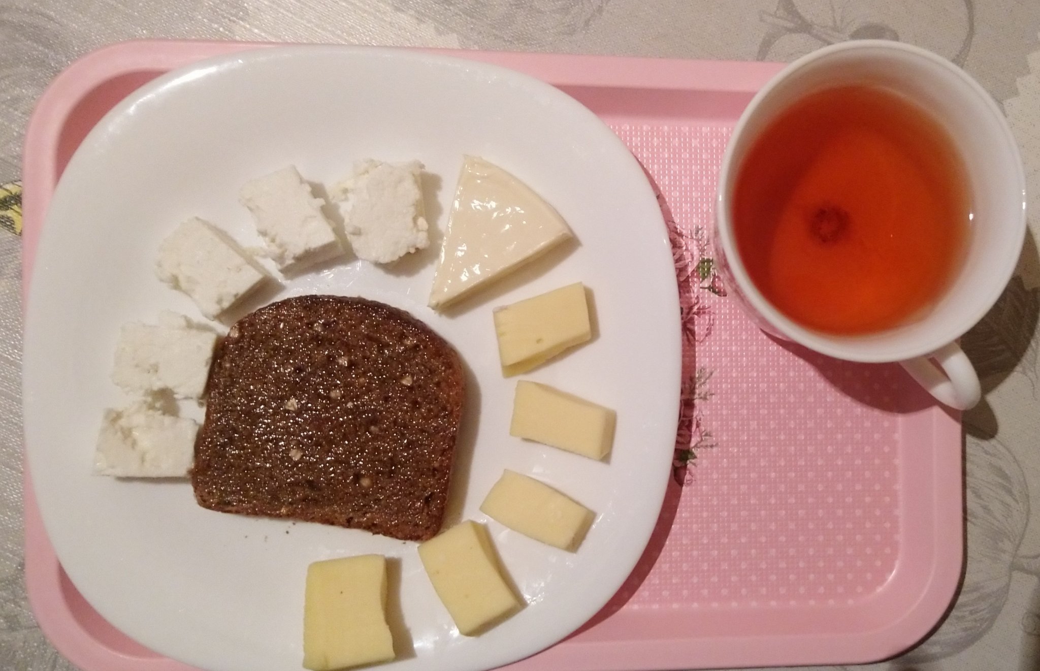 За закуска хапнахме препечени филии със свинска мас, сирене, кашкавал, топено сирене и билков чай