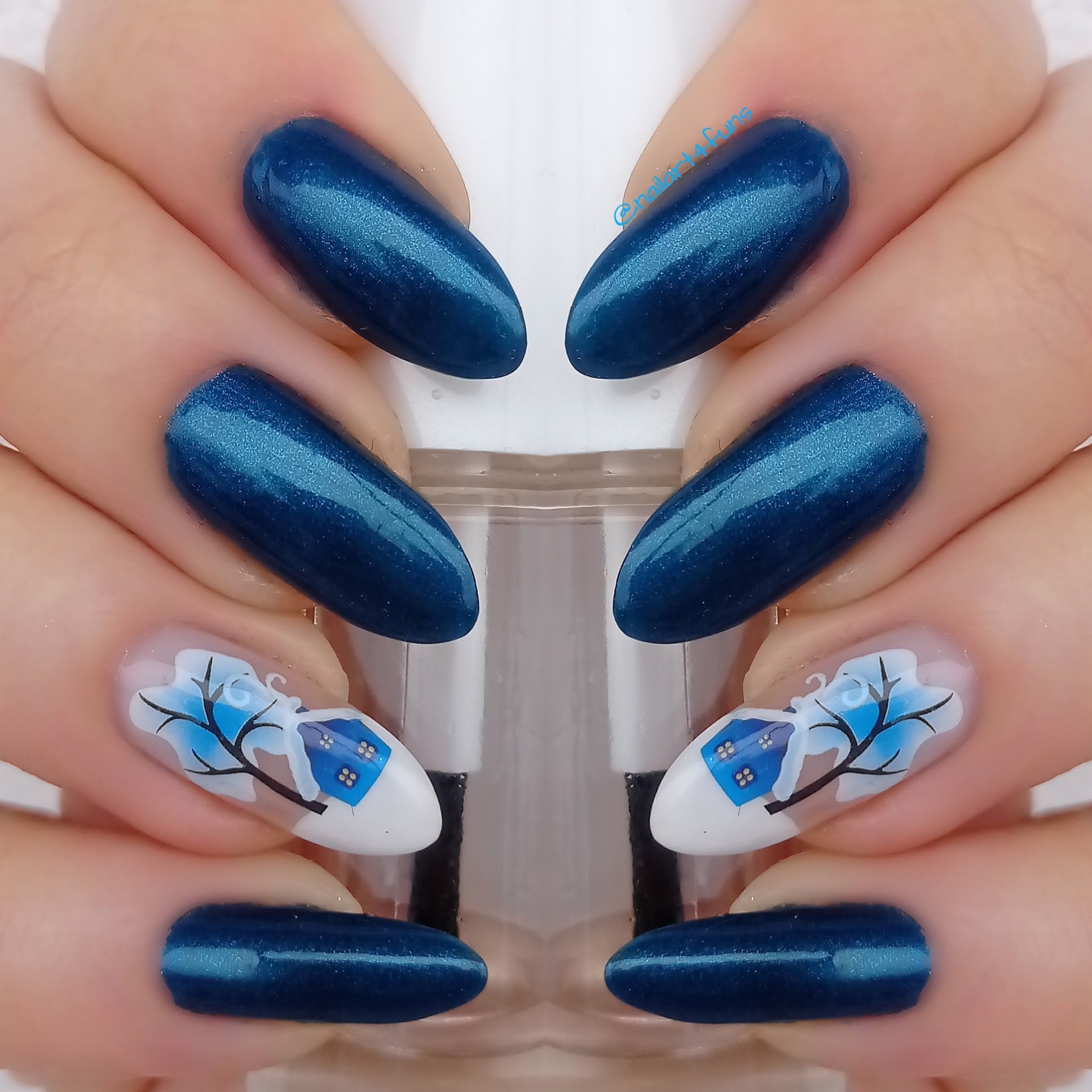 Аз съм с най- неуловимия лак 😄 изглежда син, но е по- скоро сиво- син. Мъчих го мъчих го филтри слагах, не мога да го докарам реален. Такъв зор не е било...