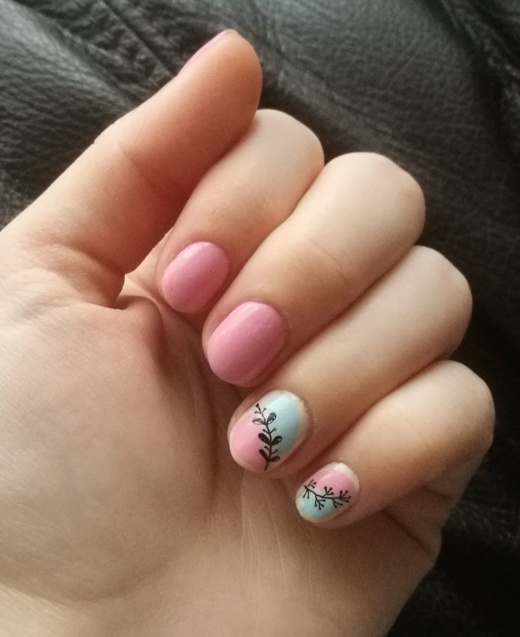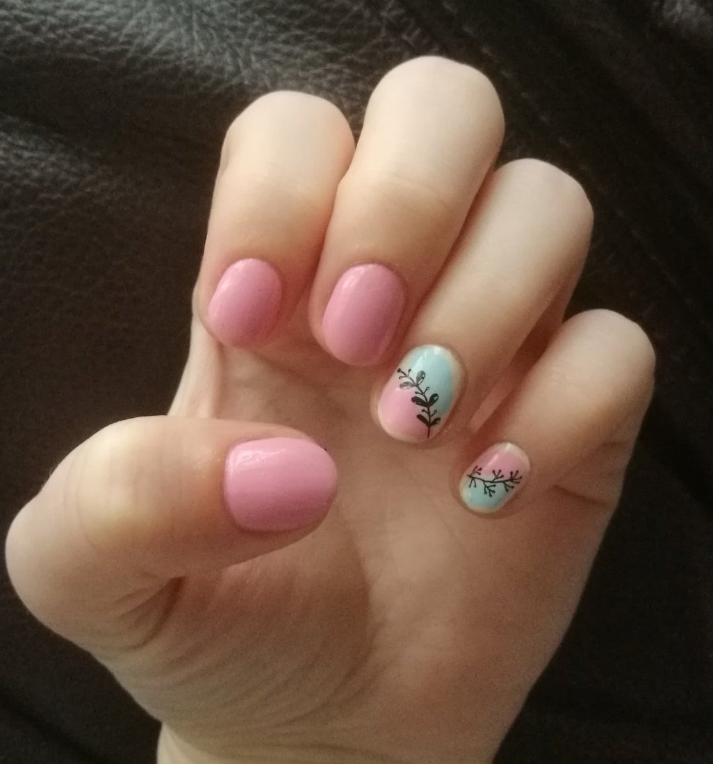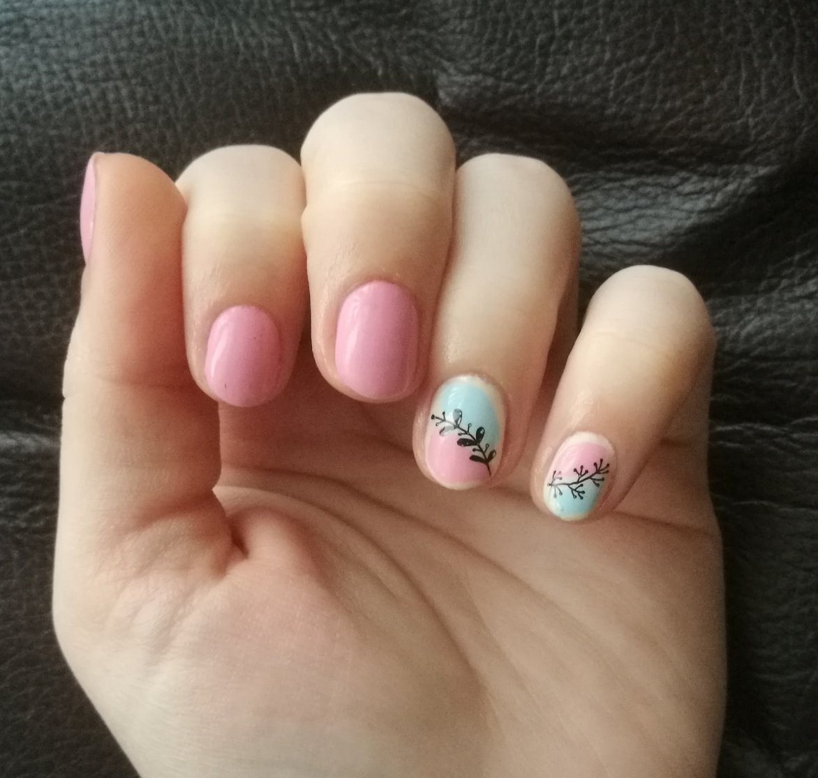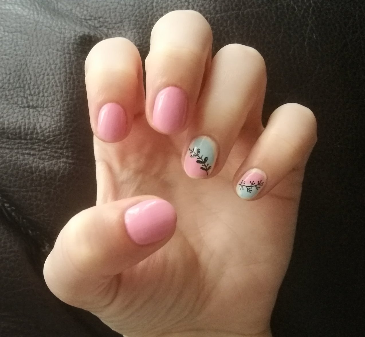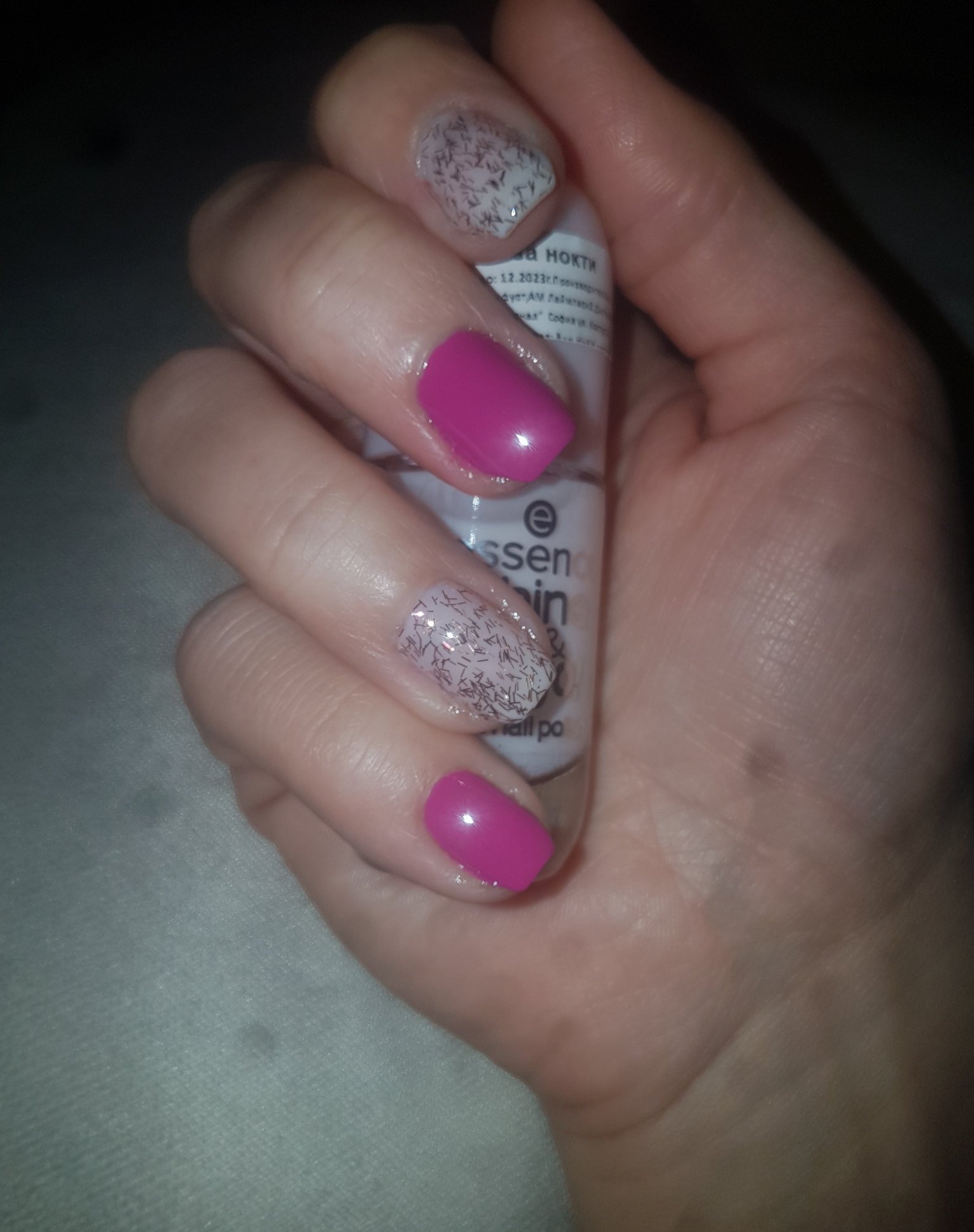 Bel London - 18, 21 Cosmetics - 12 и Gabrini Nude - 01. Декорацията е направена с печати. Розовото е една идея по-наситено на живо, отколкото на снимките.