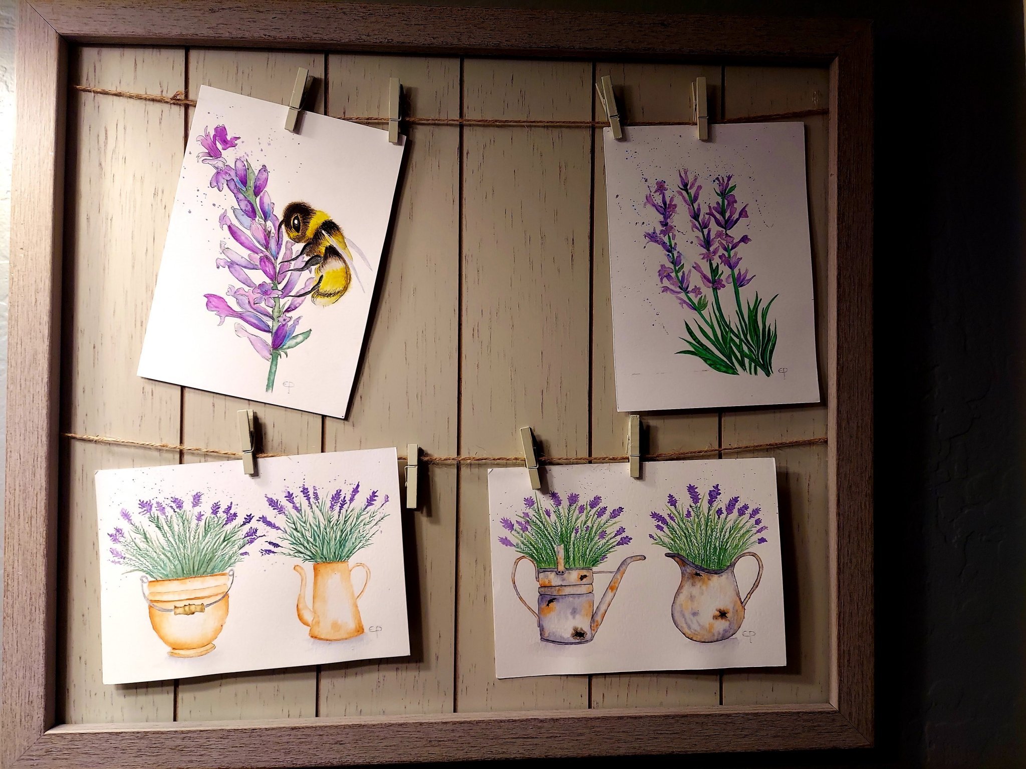 Моята много мила и много талантлива сестра ми е нарисувала акварели за лавандуловата тоалетна и ми ги изпрати чак в Щатите Heart