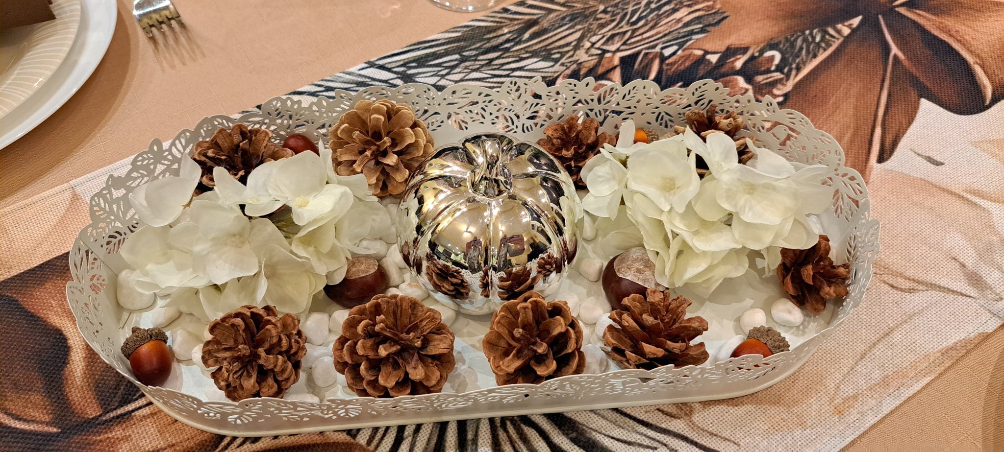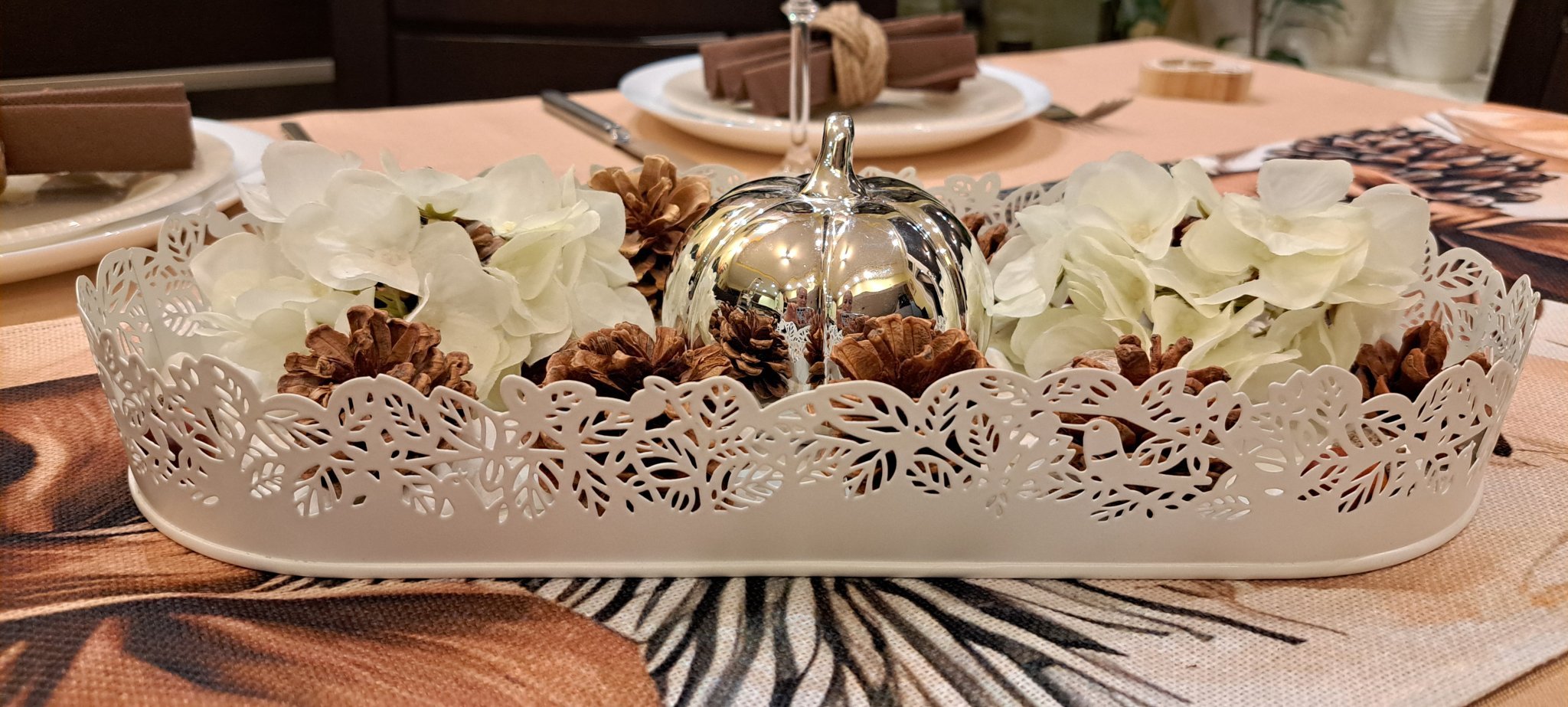 Предложения за декорация включват използването на картини, свещи, рамки със снимки, камъчета, миди, аромати и различни малки предмети. Споделени са също идеи за украса с луковици, зюмбюли и нарциси. Освен това се предлагат идеи за промяна на сервизи за хранене и декорация със самозалепващи се фолиа. Някои идеи включват използването на шишарки и клонки за създаване на сезонни декорации, като например пролетна, зимна или празнична. Предложенията варират от просто премахване на клони и изтънчване на шишарки до боядисване с бяла акрилна боя, добавяне на брокат за снежни искрици, поставяне на изкуствени елхови клонки и сухи цветя, както и комбиниране с други декоративни елементи.