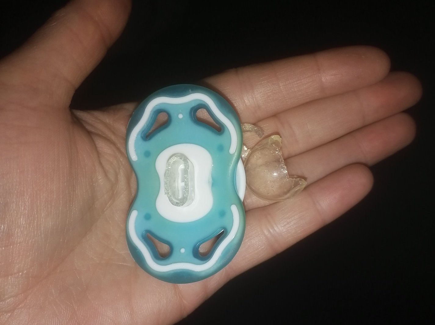 Биберон се надявам да съм успяла  да извадя целия, късно видях че го разкъса. Пъво и се радва и и го устави да си играе, но в мо ента в който видях че го е разкусала бърках е устата дано не е погълнала.