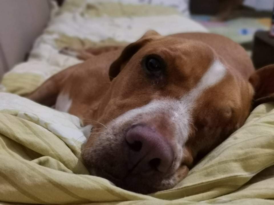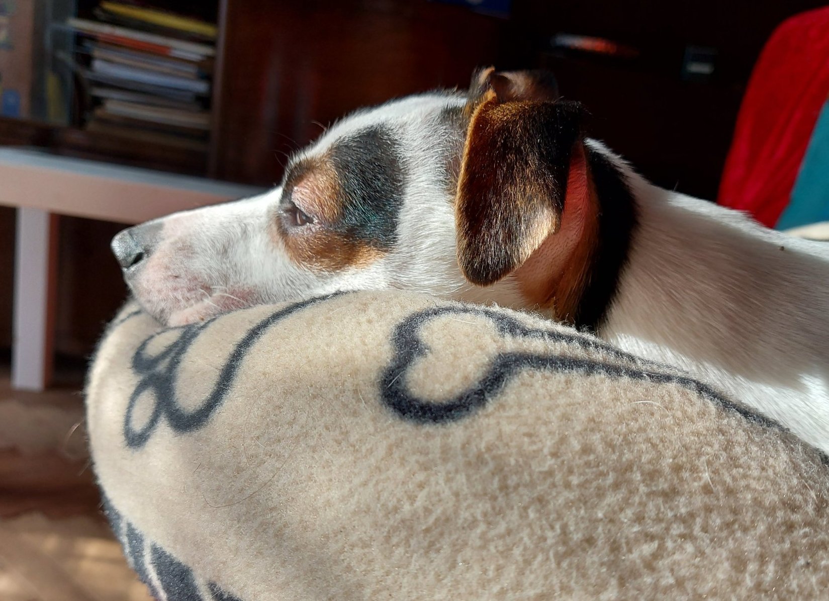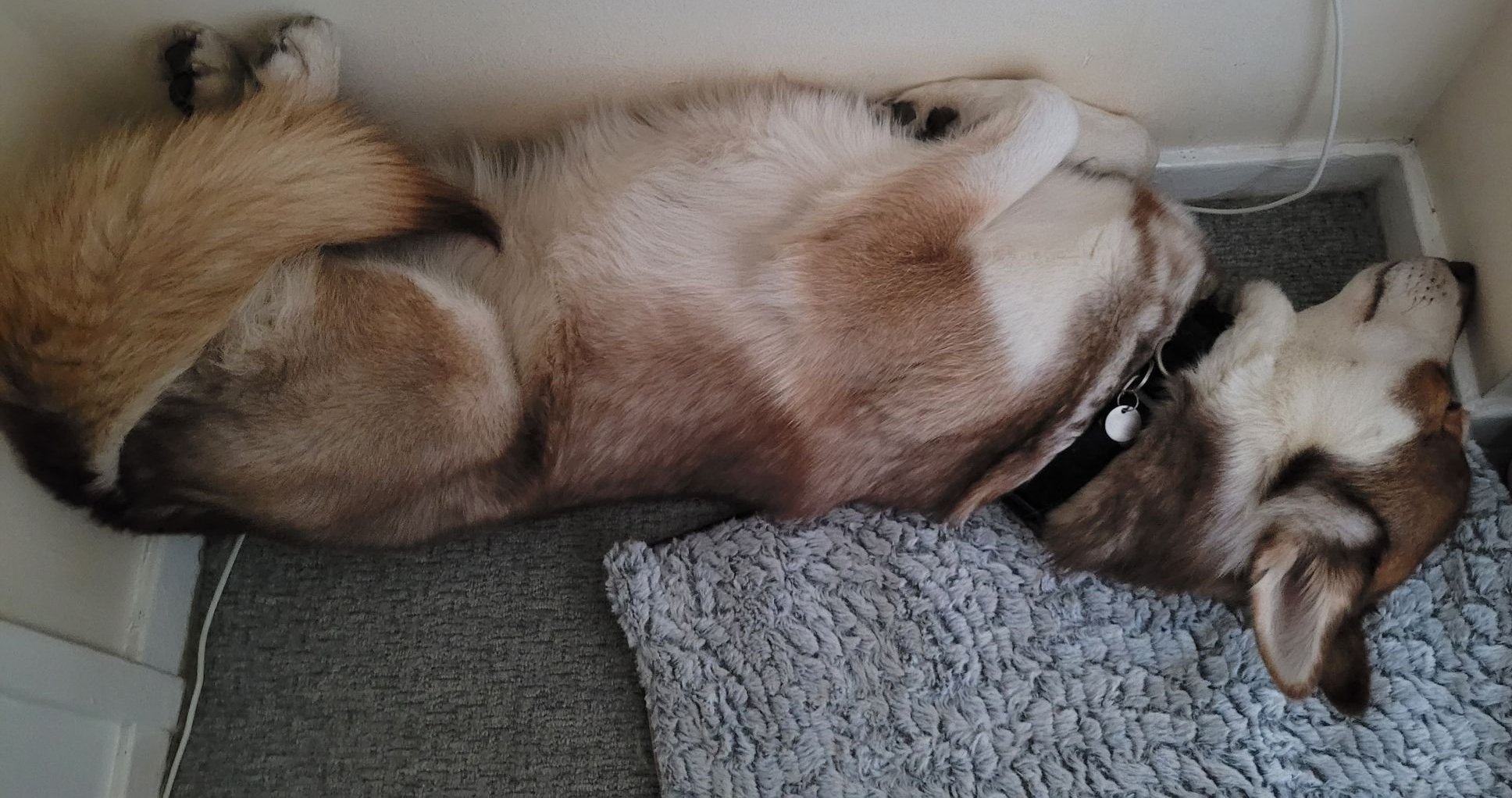 Понеже цял ден лежа на слънце, сега е изморена и спи, ама като човек на възглавница спи. Много обичам като прави така Simple Smile
