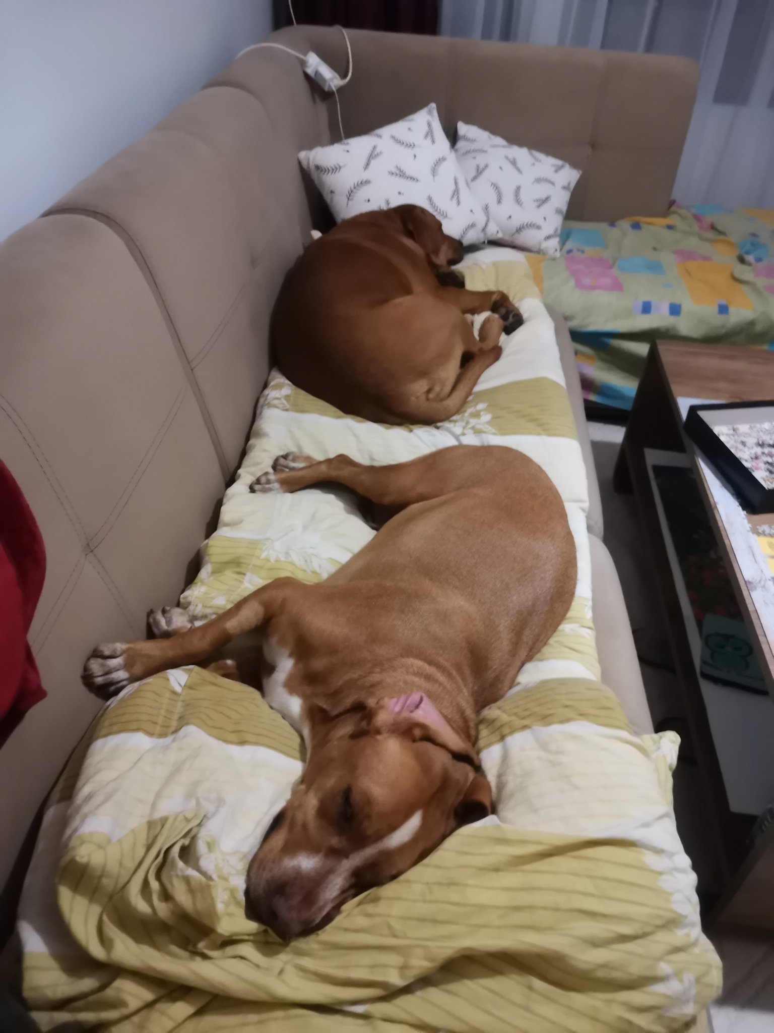 От вчера върлува някакво разстройство при Леон. Днес вече е на картофче, варено с ориз. И пробитик дадох и май се затяга работата. Не е още добре, обаче.