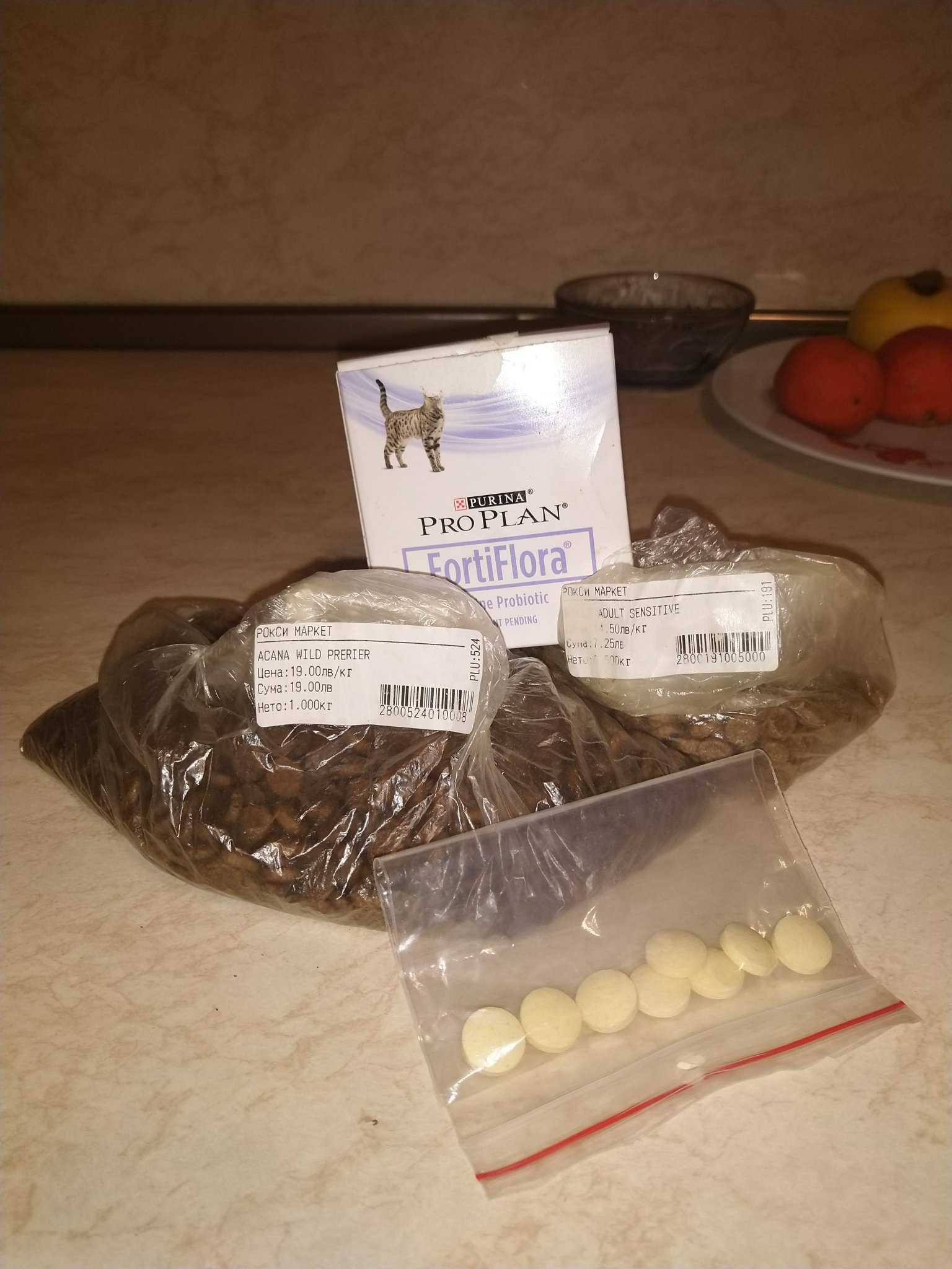 . хапчетата са вит.давам и на орижен с три вида риба ...нотя е в буркана.....там смесвам от трите вида гранули ,а вит. най отгоре на купата.....но след дом .приготвена храна гранули яде малко....(само едното ядене е сурово)....после варено и бульон......пробиотик а е малко на око.... едно пакетче за седмица....по малко върху мократа храна.........ех чак аз се разсмях....готвя сурово месо.....ама нали все бързам....та така....