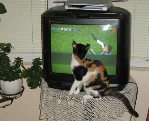 Разтърсих се и аз из старите снимки, да ви покажа Кетя как гледа телевизия и чете бг-мама. Спомени от преди много много години, когато компютрите бяха други, телевизорите също, че и форумът изглеждаше съвсем различно Laughing
