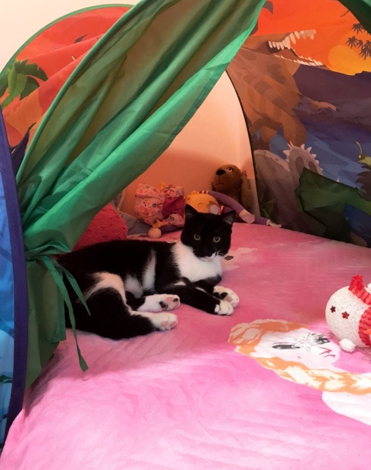 Тези палатки опънахме за човешките ни деца, но и котараците им се радват много. Крият се, спят в тях, препускат.. 😁