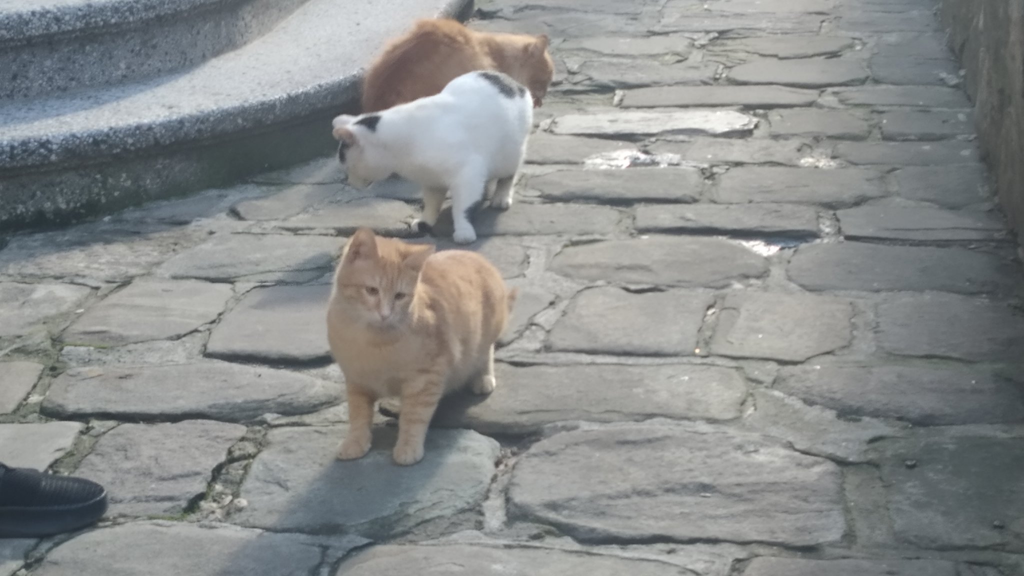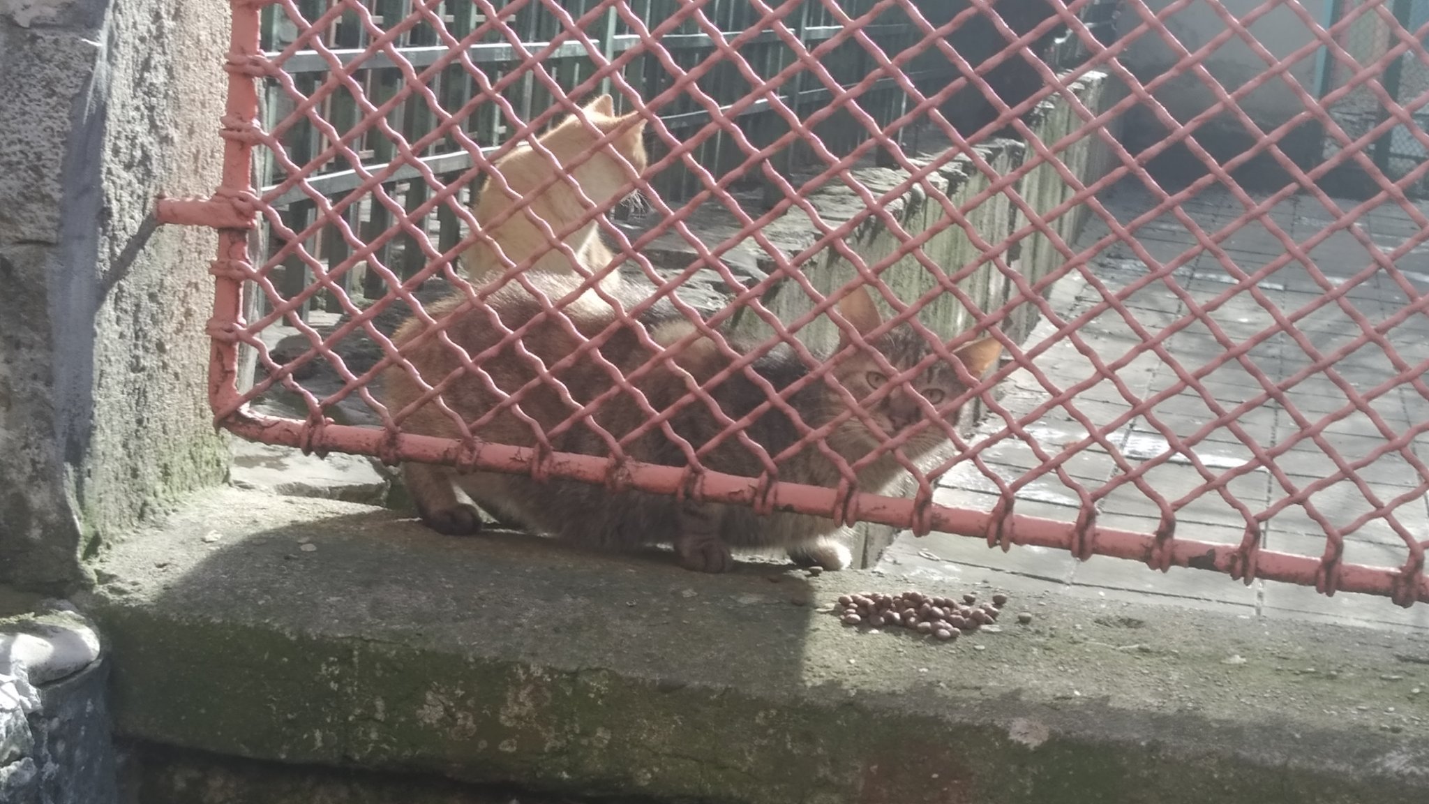 Второто (няколко съседни двора с лесно преминаване от един в друг). Тук видях и две котки с ген на една трицветна, която живееше около нас, но отдавна изчезна. Цялото й потомство е като нея дългокосместо, с много рунтави опашки, с малки глави, издължено тяло и по-къси крачета. Всички са оранжеви или оранжево с бяло. И много диви и страхливи.