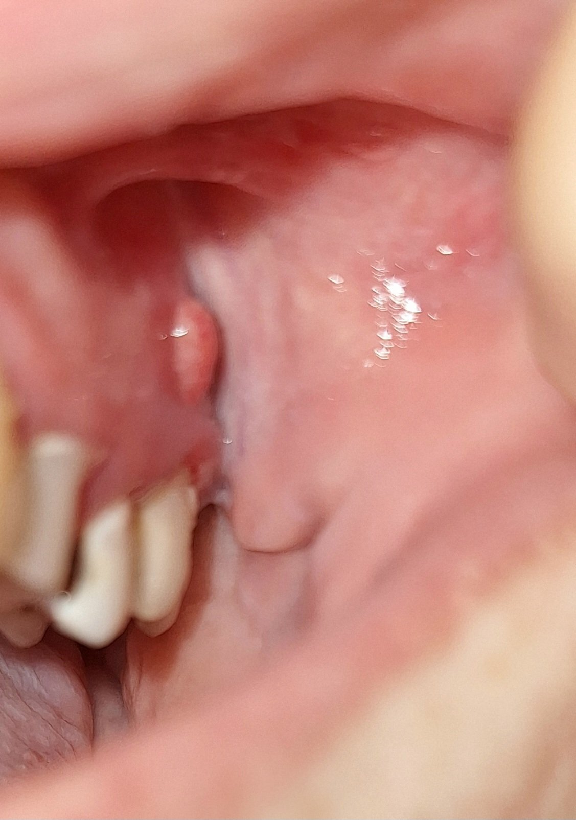 Здеавейте преди няколко дни забелязах топче на венеца горе в ляво, като цяло не е болезнено, само при докосване има болка. На зъболекар съм в петък. От какво може да е?