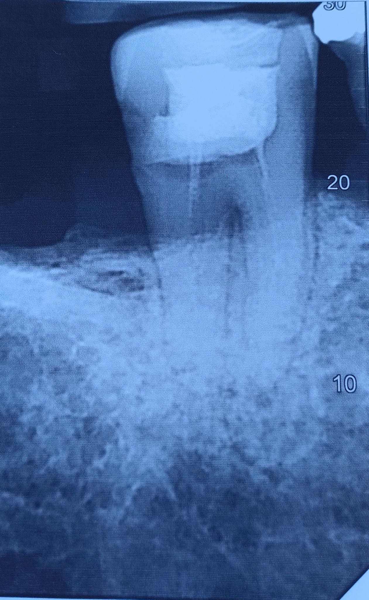 Ние нямаме в нашето градче такъв специалист Hushed, затова ходих при хирург - той видя до къде са запълнени каналите и каза че понеже вече съм на години, каналите са калцирали и не могат да се пробият и запълнят  до край, и поради тая причина е възможно в тях да има някакви патогени все още. Да съм изчакал още десетина дена и ако боли - вадене Laughing. Иначе зъболекарката  ми пломбира зъба, макар че и казах че ме поболва от време на време към ухото, тя доста се занима с него жената , умъртви нервите, почисти го, три пъти му слага лекарство, много се стара жената, то вече месец само с него се занимава. Не меболи винаги - един ден ме боли един ден - не . Ям си на него, няма реакция на студено , топло и почукване. Ходих и на ушен лекар и той каза че нямам проблем с ухото. Хирурга каза да не пия антибиотик защтото нямало смисъл, а само да чакам. А бях почнал Оспамокс, две хапчета бях изпил, ама май не видях ефект. Та понеже нямам избор ще чакам какво да правя, цял месец че и повече одисея егаси чудото един нищо и никакъв зъб. Това е снимка след като е пломбиран зъба. Скъпичко ми излезе тия пулпит, но ми казаха че още по скъпо ще ми излезе и евентуално кореново лечение, но най лошото е че и то е без гаранция Satisfied