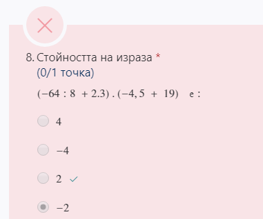 Е, да ама няма такъв отговор. Би трябвало и двата отговора да приеме за верни г- жата тогава. и 2 и - 29
