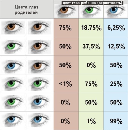 За родители със сини в таблицата е отбелязано 0% детето да е с кафяви, но четох някъде, че е последно е доказано, че има вероятност, макар и малка.