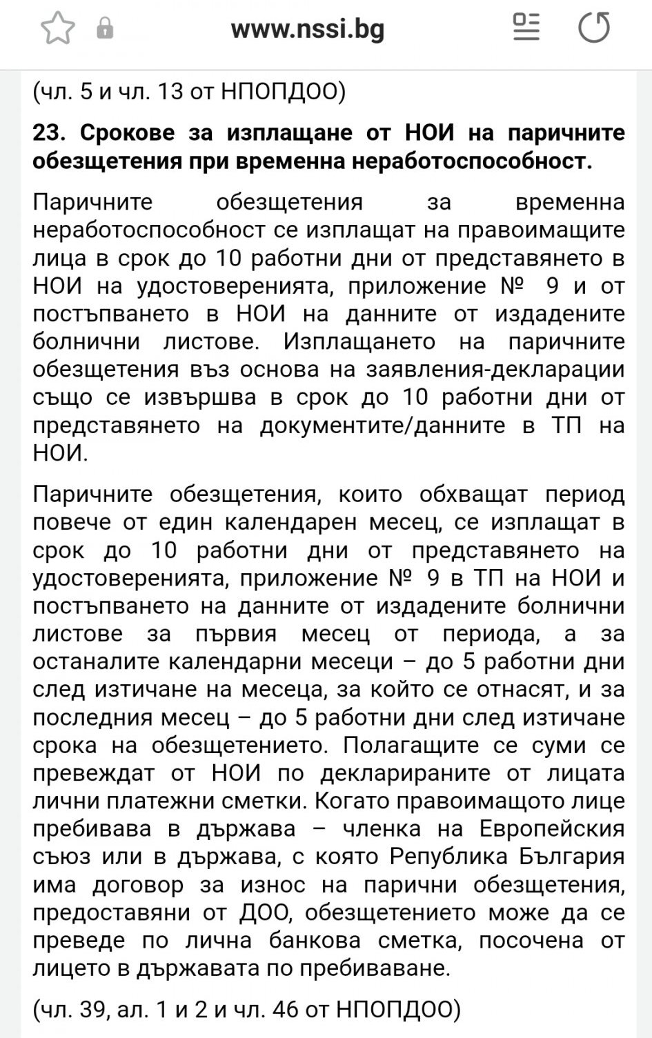Тук са посочени сроковете на изплащане на обезщетения, в зависимост от случая.