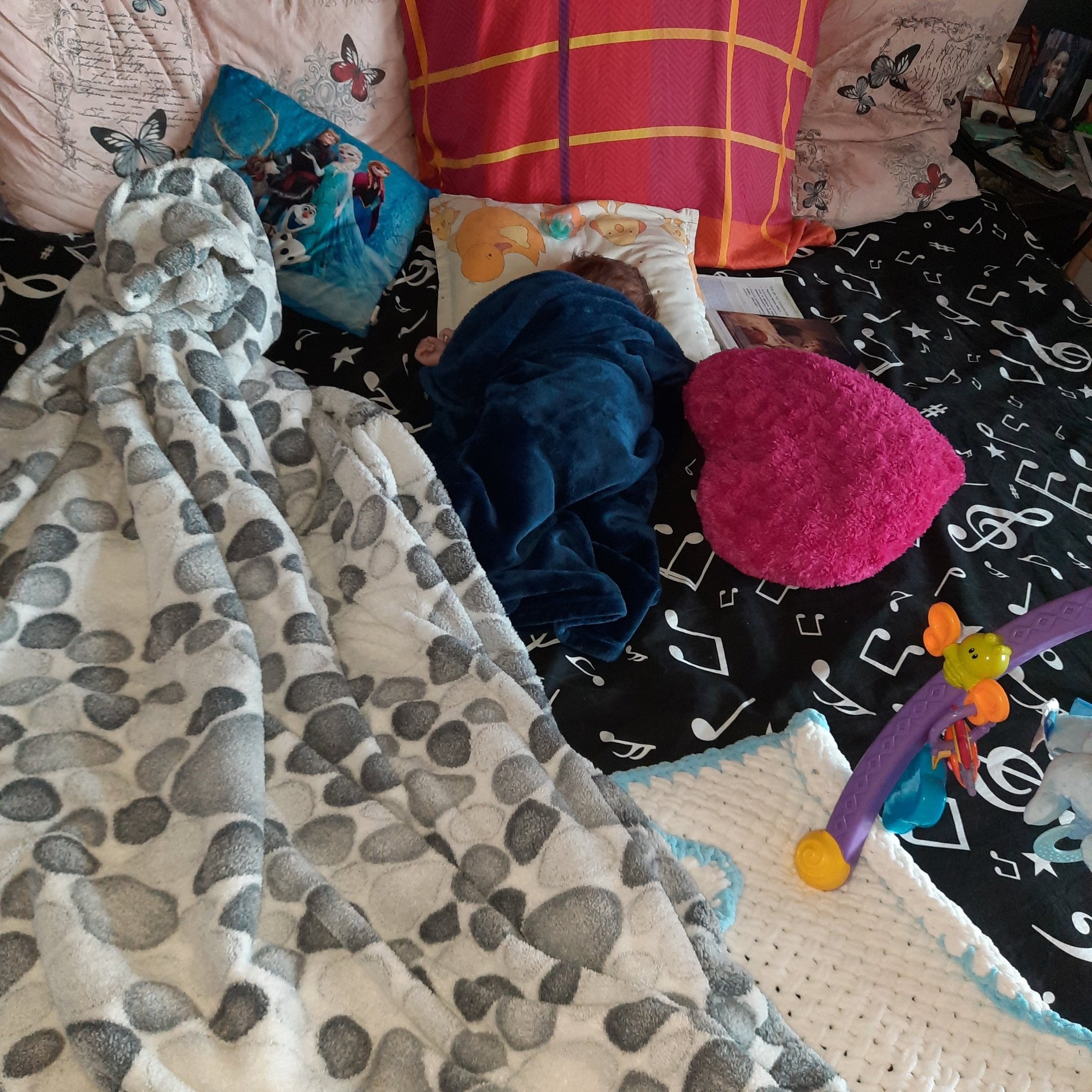 Ей го на! Вече 30 минути лежи в креватчето и ми се смее, а е буден от 11ч. Дремна в мен за 20 Мин само, докато го кърмих 🤷