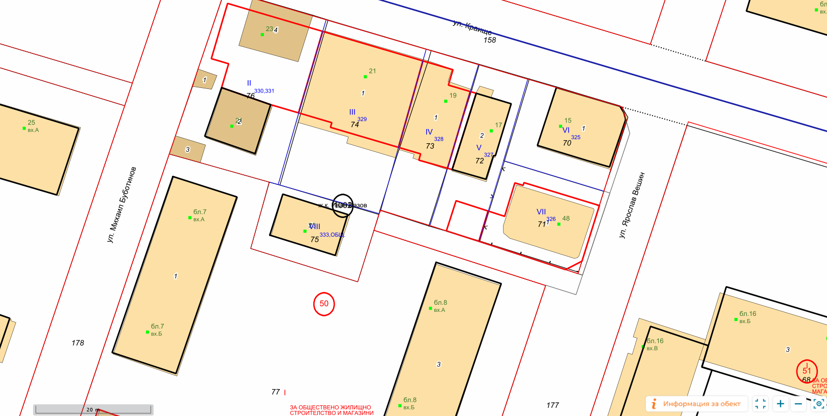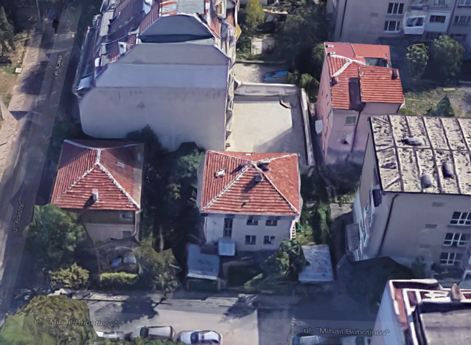 Не че нещо, но в този случай вероятно собствениците са отстъпили право на строеж, след което са ревнали, че искат да им се запази едната къща, а по сегашната регулация новата сграда задължително трябва да покрие калкана на вече изградената съседна кооперация, която засича с около 150 см. съществуващата къща на ул. М. Буботинов в съседният парцел. И се е получило това недомислие.