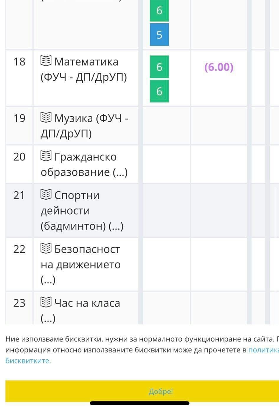 Светле, това с оценките по фуч при вас си е грешка. Чл. 118 от ЗПУО, (5) Не се поставят оценки по учебните предмети, модули или дейности, предвидени за изучаване във факултативните часове от училищния учебен план, с изключение на спортните училища, при обучението в учебните часове по чл. 92, ал. 1, както и по специалните учебни предмети за учениците със сензорни увреждания.