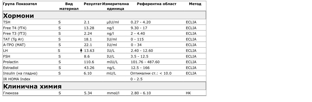 Само да спомена нещо, във връзка показателите на ЩЖ - нали сте взели предвид факта, че "хормони в норма" не е равнозначно на "оптимални хормони"? Това е важен момент, според мен, при тълкуването на хормоните.
