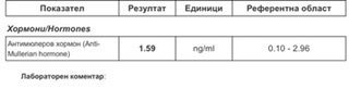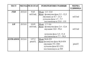ЛХ, ФСХ и Е2 са високи - показват пременопауза и НЯР, но АМХ е висок за тези стойности... т.е има разминаване