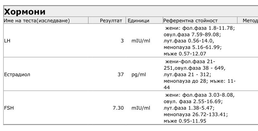 Може ли моля те коментар на изследванията ми? fSH, LH и E2 са изследвани на 3 ден от МЦ, а останалите на чист