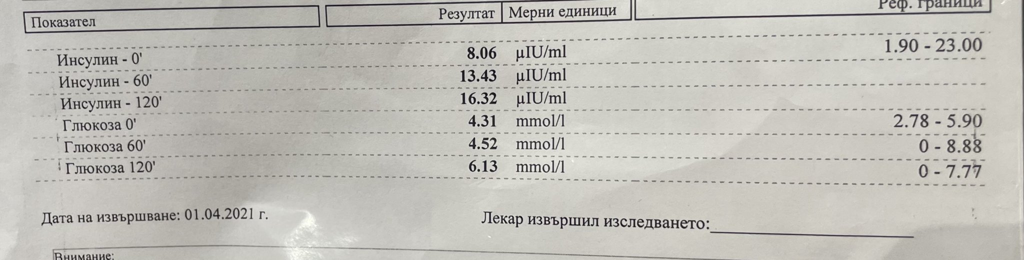 Инсулинът на гладно е висок - показва, че има проблем ( ИР), но нещо имаш проблем със секрецията на инсулин или не си спазила условията на теста ( да си в покой между пробовземанията и т.н). КЗ на 120 мин остава висока, т.е инсулина не успява да я понижи... а това не е добре, влияе зле на яйцеклетките /ЯР и т.н. ( ако правиш опити за бебе).