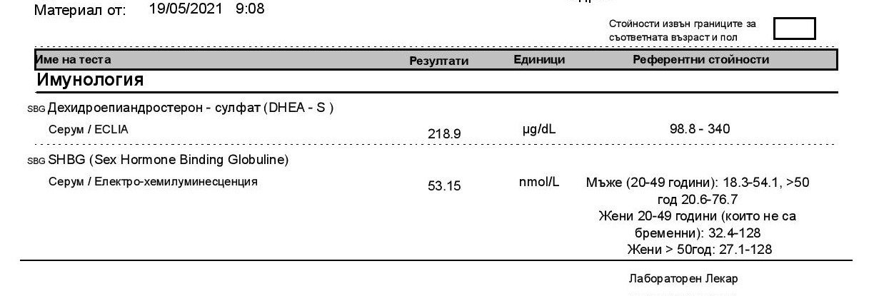 Освен пролактина сега ми излязоха завишени и тестостерон и андростендион. На предишни изследвания тестостерона ми е бил на долна граница. Възможно ли е да е от прием на 7 keto DHEA-S, тъй като го пия от няколко месеца, но не много редовно и спорадично? Дали като спра добавката ще се нормализират и андрогените? Възможно ли е да имам задържан фоликул и затова да са такива стойностите? Предният месец при преглед на ехограф на 16-ти ден се видя фоликул, а овулацията ми по-скоро беше минала.