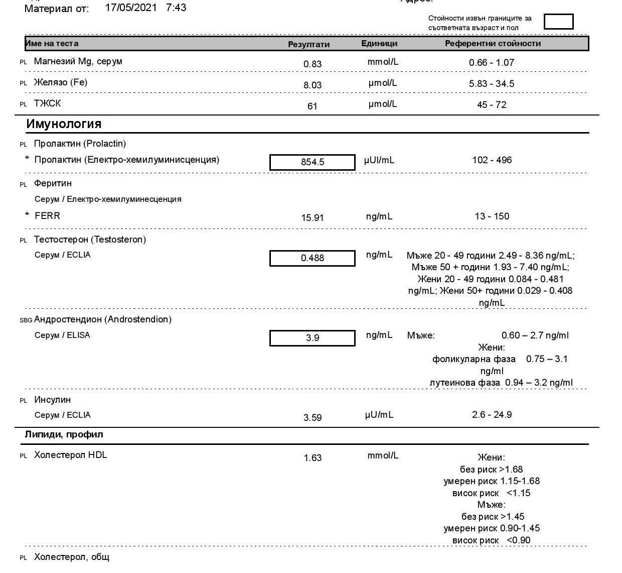 През февруари пусках пак, но в чист ден и стойността беше 1.53. Тогава гледаха и щитовидната и беше наред.