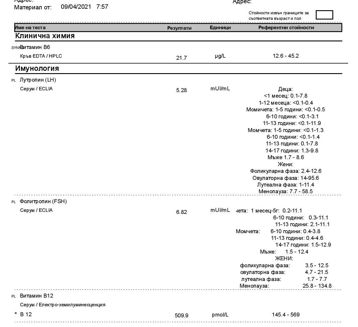 FSH   ->   27.95 IU/L   |  Реф. Стойности -> 3.5 - 12.5   |  ECLIA