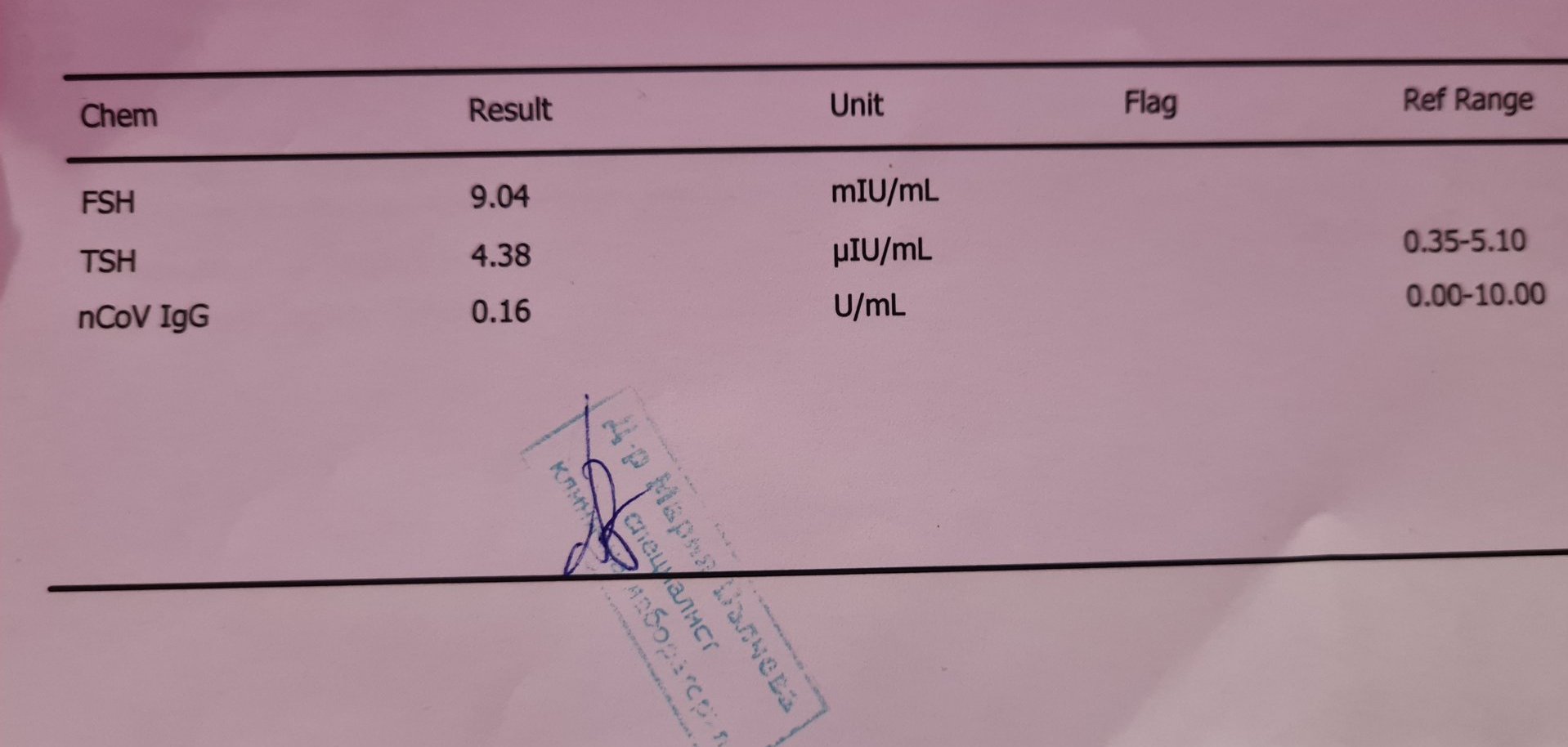 Здравейте, много моля ако някой може да ми помогне с разчитане на резултати.  Притеснява ме хормон Tsh и FSH. Изследванията са направени в 5 ден от МЦ. Не съм в града и няма как да посетя доктора си идните дни, поради тази причина моля за съдействие . Правим опити за бебе от около 4 месеца. Има ли нещо притеснително? Благодаря ви[/img][/img]