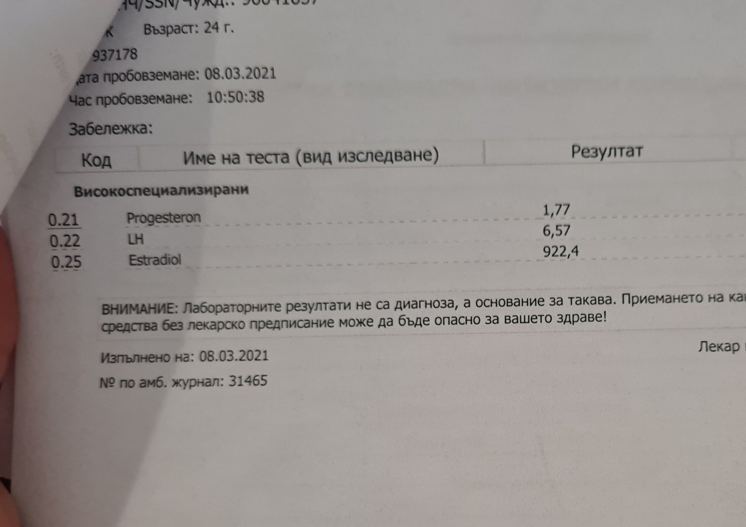 Утре ми е 7 ден от овулация, ще ходя да изследвам прогестерон (и естрадиол - доколкото разбирам, трябва и двата?) заради къса лутеална фаза миналия цикъл (9 дни). Въпросът ми е - мога ли да тренирам преди това, влияе ли се от физическа активност хормонът? За храната и кафето ясно, че ще е на гладно. Много ще съм благодарна за мнения.