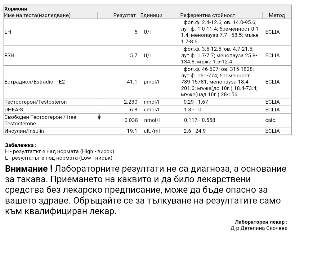 Здравей Денис, може ли коментар на изследванията ми. Направени на 3 ден от цикъла, на 31 години съм. Правим опити за бебче. Прогестерона не е добре, надявам се тези поне да са...