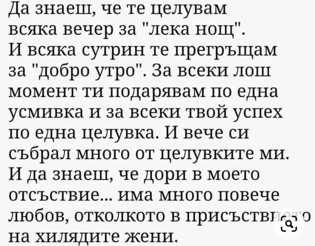 Това се нарича безусловна любов, не може да се имитира. Ако закъснее на втория ден, ще кажа с още по -голяма любов: