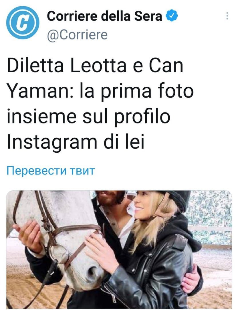 Дилетта Леотта и #ДжанЯман снова вместе на фото в соцсетях: после фото, опубликованного турецким актером в своем аккаунте, настала очередь телеведущей и представителя Dazn опубликовать снимок с Яманом.... пока они ласкают лошадь: его рука, мягко положенная на ее спину, не ускользает от внимания. Снимок, явно подтверждает и оформляет их союз, который продолжается уже более двух месяцев.Именно еженедельник «Chi» открыл эксклюзив их первой романтической встречи в Риме, в отеле «Эдем», где они оба остановились на уик-энд и где зародилась их любовь...они никогда не подтверждали и не отрицали своих отношений. Мы думаем, что социальные сети проясняют ситуацию, и, как видно из фото, пара более сплочена, чем когда-либо. Они подписались друг на друга в социальных сетях только в конце января, во время его участия в качестве гостя в «Тебе есть письмо», и теперь не жалеют друг для друга сердец и лайков. Хорошо информированные источники говорят о возможном совместном проживании, неизбежном для преодоления проблемы расстояния (он в Турции, она в Милане): несомненно, что Дилетта Леотта и Джан Яман - самая обсуждаемая пара начала 2021 года.