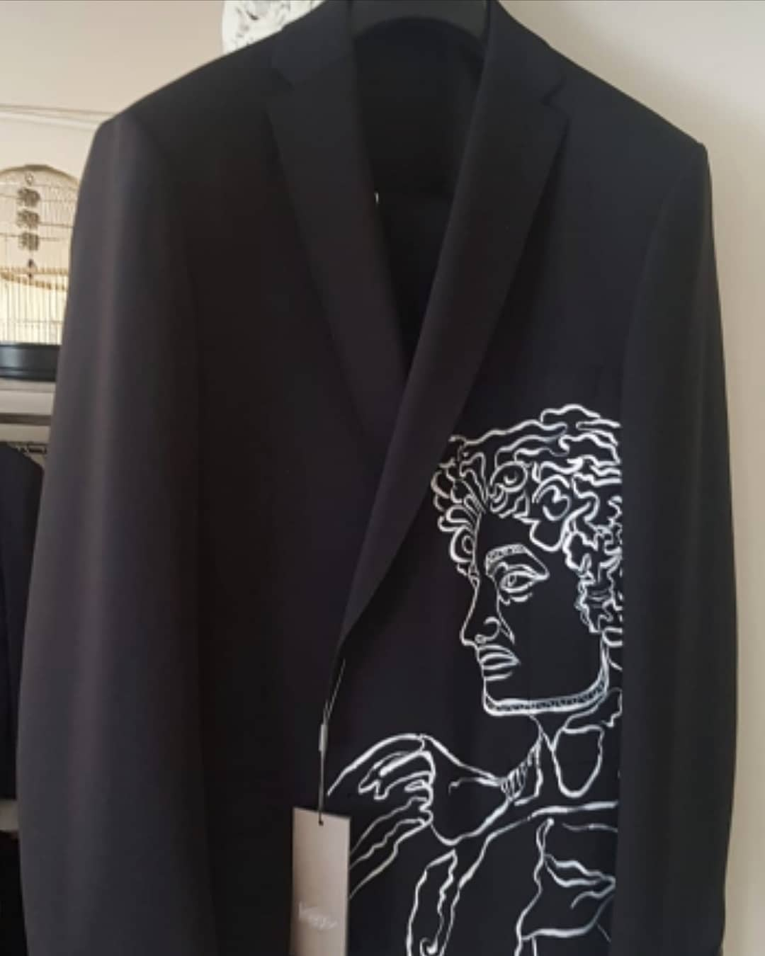 Каква случайност само!!! Grinning Джан със сако, изобразяващо Давид - перфектния!