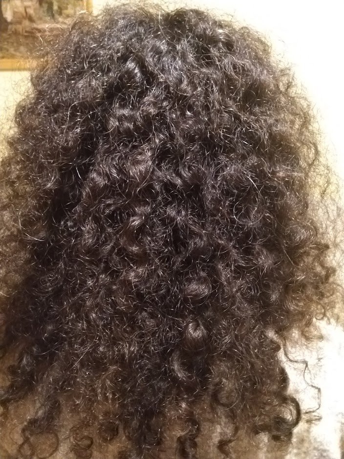 1. Крема на BioSilk направо ме изумява, все едно съм си сложила перука - косата ми изглежда и се усеща двойна, едва я събирам в обичайния си ластик! Плътна, жизнена, мога да кажа, че леко втвърдява косата, но не неприятно, не оставя усещане за натрупан продукт. Къдриците са оформени, почти никакъв фриз няма;