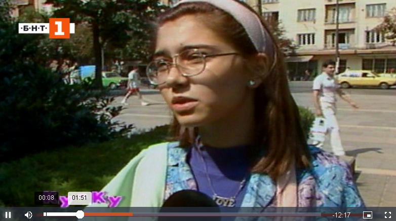 В сайта на БНТ попаднах на статия за сегашните избори, към която има видео с моменти от "Ку-ку", част от които е и една анкета, направена от Петър Курумбашев с въпрос "След 18 месеца демокрация по-добри ли станаха хората?". Т.е. - ясно е кога се е случило - преди 30 години. Та, около 1:50 на въпроса отговаря едно момиченце. В първия момент не успях да го позная, но една нотка в гласа ме накара да върна и да се уверя, че все пак правилно ми е "подсказала".