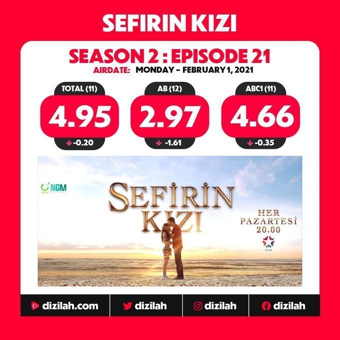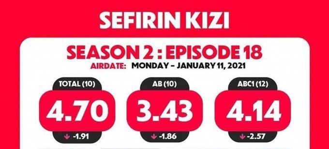 Рейтингът от снощи - 1 февруари - 38 еп. и рейтингът от 11 януари - 35 еп., почти целият бе с Неслихан и Ураз - сватбата им. Е, каква е разликата - особено в падането му... В падането на 35 - голяма.