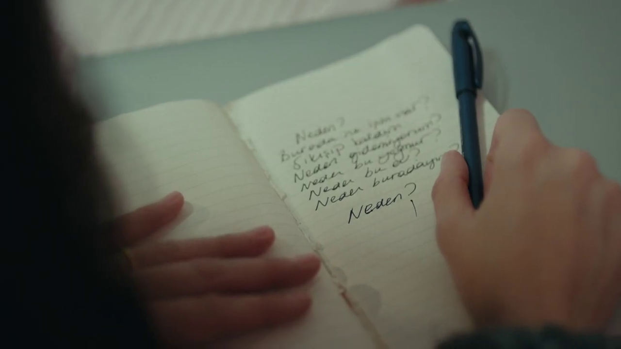 Мави също пише в  един бележник, но после къса листа и го хвърля /последния го изгори/. Личаха  доста откъснати листи.