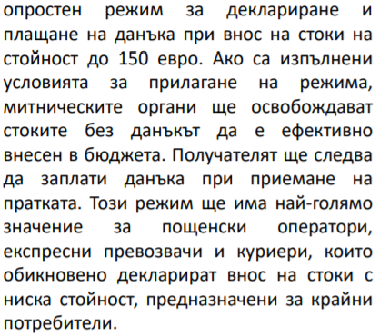 Обаче за по-скъпите това директно плащане на данъка онлайн би следвало да ви спести след това разправиите с митниците, поне за стоки, които не изискват мито. Понеже вие го плащате онлайн при покупката и след това е работа на продавача да го предаде на съответните власти.