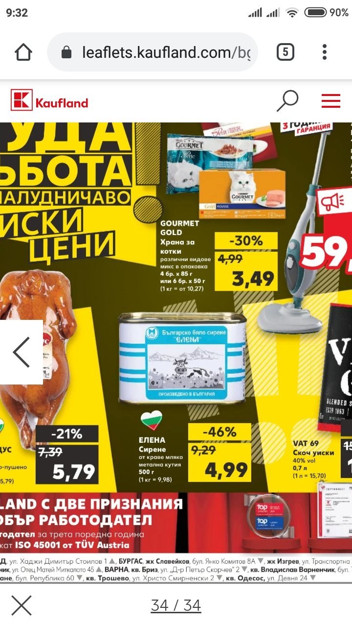 Благодаря за брошурата. От кога сиренето Елена в метална кутия от 500 гр е на редовна цена от 18,56 за 1кг и в събота го намалят с 46%? На мен ли ме се струва, че нещо ни пързалят. От години го купувам, но никога не е било на такава цена.