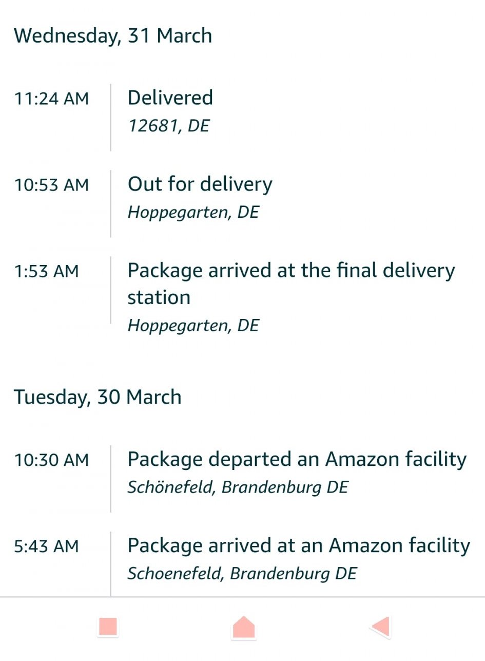 На 30,03 пуснах 3 неща през амазон.де - с една поръчка, която я разделиха на две (C Prime дойдоха за 2 дни) - 01.04.
