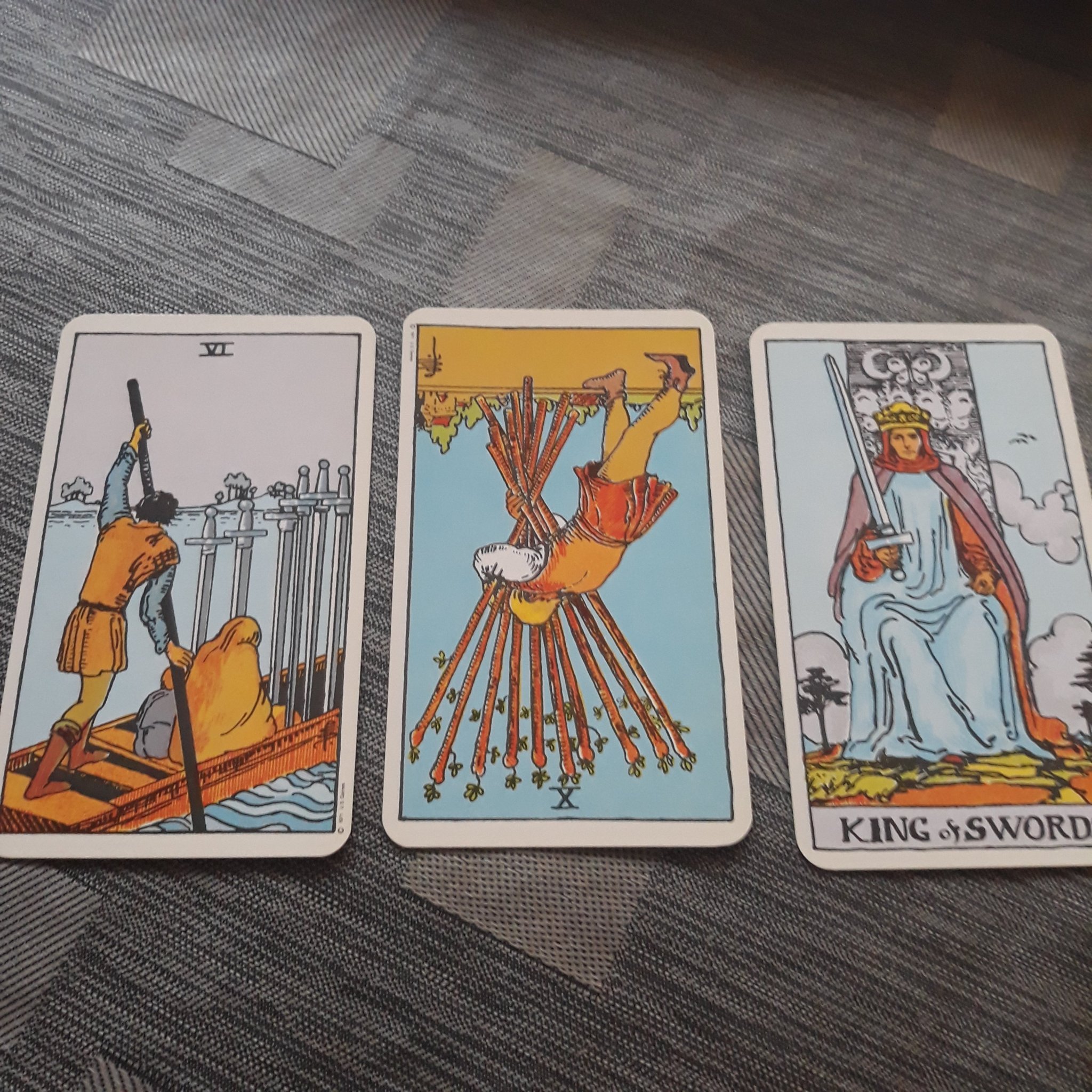 8 чаши, крал меч, девятка пентакли.